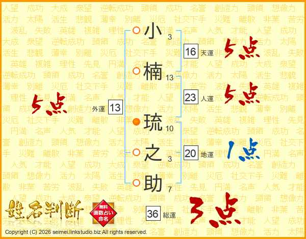 小楠琉之助さんの人運は23画の5点!