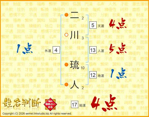二川琉人さんの人運は13画の5点!