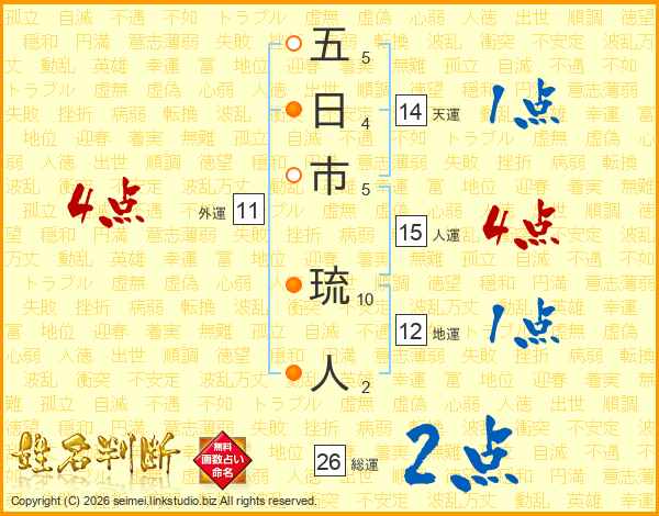 五(5画)日(4画)市(5画) 琉(10画)人(2画)