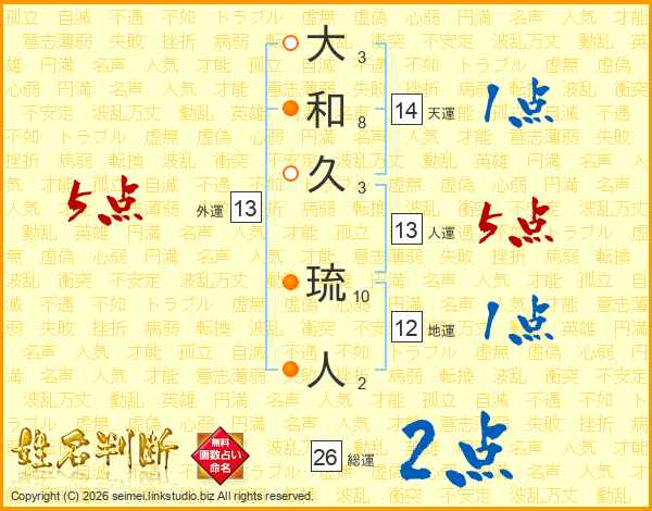 大和久琉人さんの人運は13画の5点!