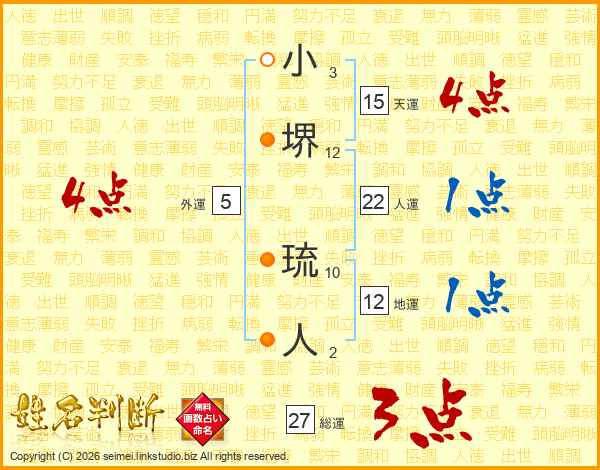 小堺琉人さんの総運は27画の3点!