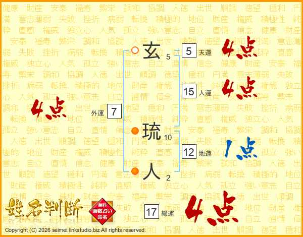 玄琉人さんの総運は17画の4点!