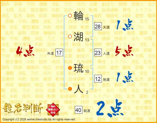 輪湖琉人さんの総運は40画の2点!