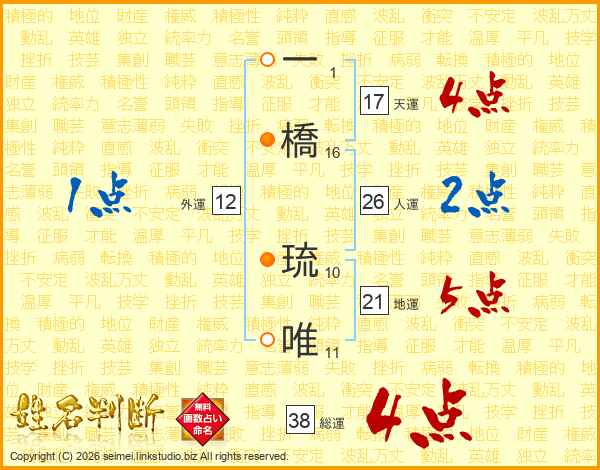 一橋琉唯さんの総運は38画の4点!