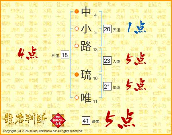 中小路琉唯さんの総運は41画の5点!