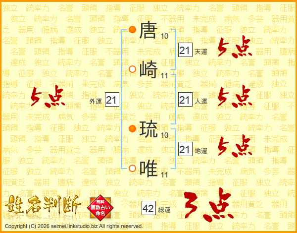 唐(10画)崎(11画) 琉(10画)唯(11画)