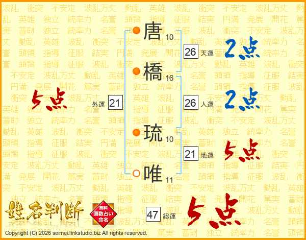 唐橋琉唯さんの総運は47画の5点!