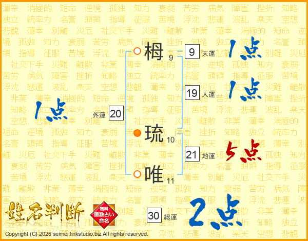 栂琉唯さんの地運は21画の5点!