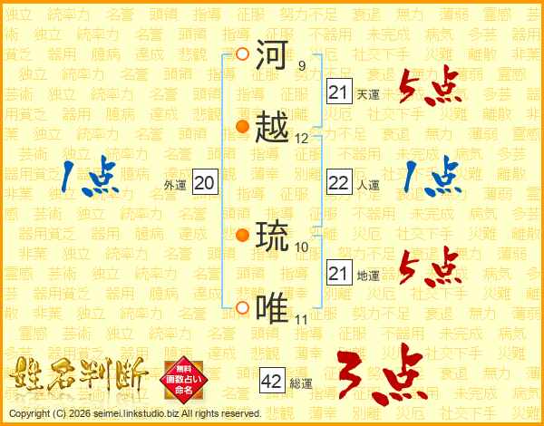 河越琉唯さんの天運は21画の5点!