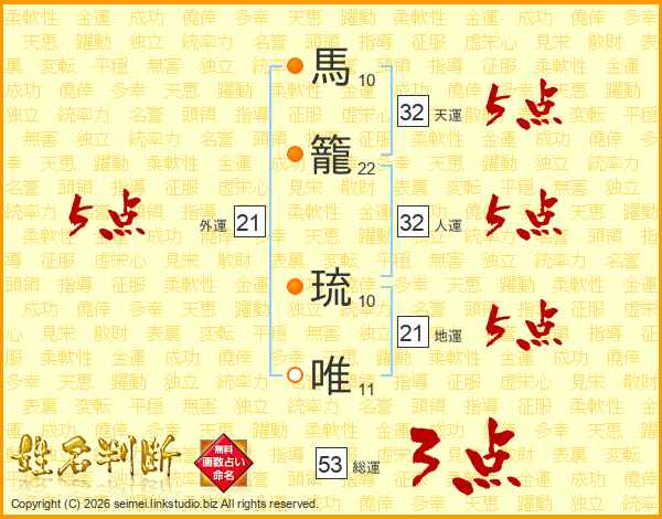 馬籠琉唯さんの外運は21画の5点!