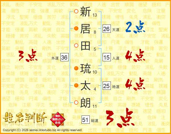 新居田琉太朗さんの天運は26画の2点!