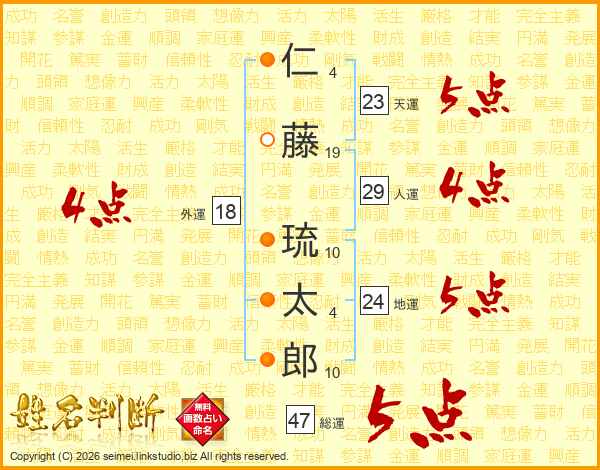 仁藤琉太郎さんの総運は47画の5点!