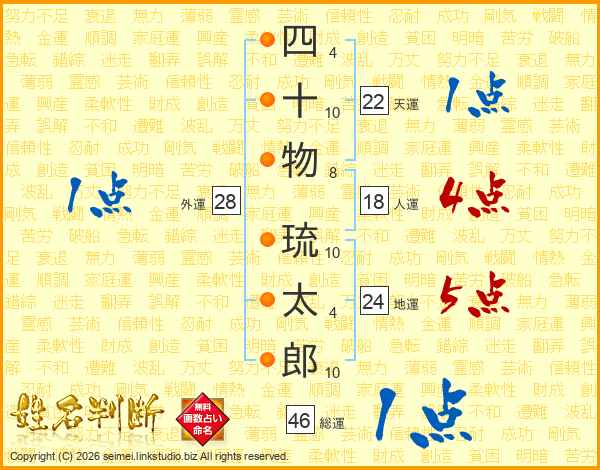 四十物琉太郎さんの総運は46画の1点!