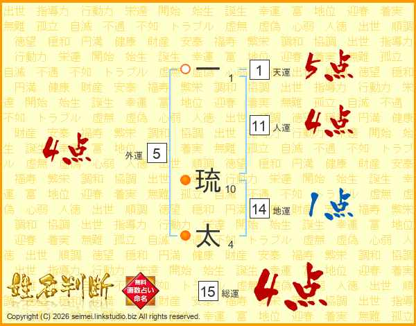 一琉太さんの総運は15画の4点!
