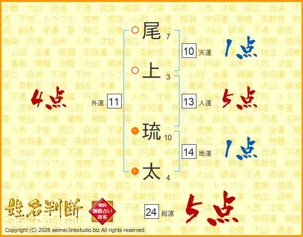 尾上琉太さんの総運は24画の5点!