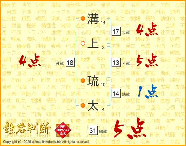 溝上琉太さんの総運は31画の5点!