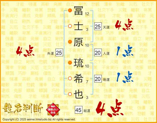 冨士原琉希也さんの天運は25画の4点!