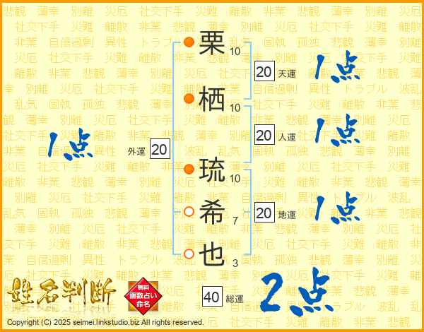 栗栖琉希也さんの総運は40画の2点!