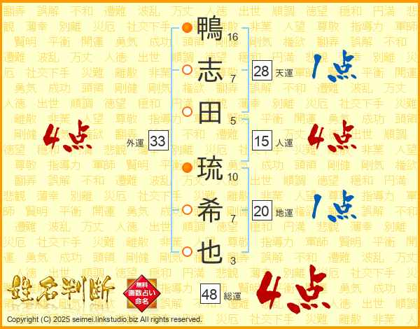 鴨志田琉希也さんの総運は48画の4点!
