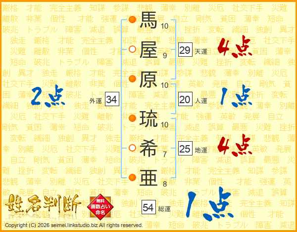 馬屋原琉希亜さんの総運は54画の1点!