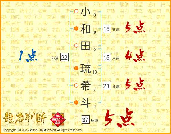 小和田琉希斗さんの総運は37画の5点!