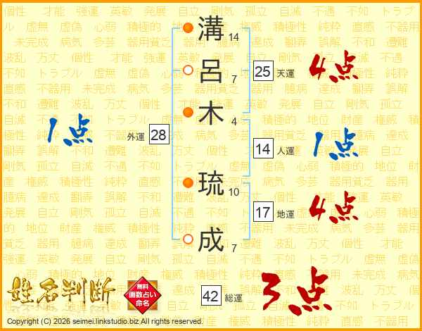 溝呂木琉成さんの総運は42画の3点!