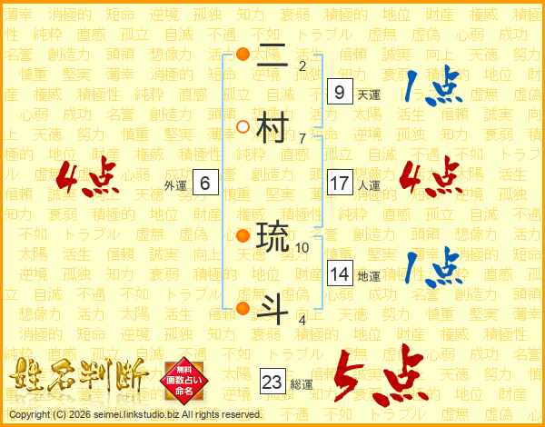 二村琉斗さんの総運は23画の5点!