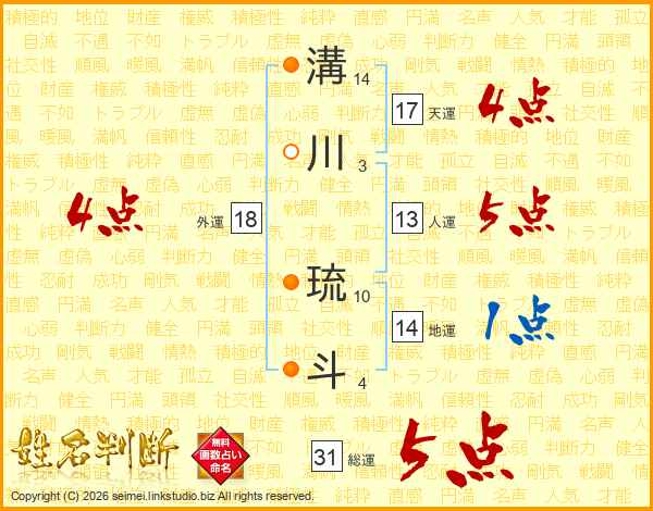 溝川琉斗さんの総運は31画の5点!