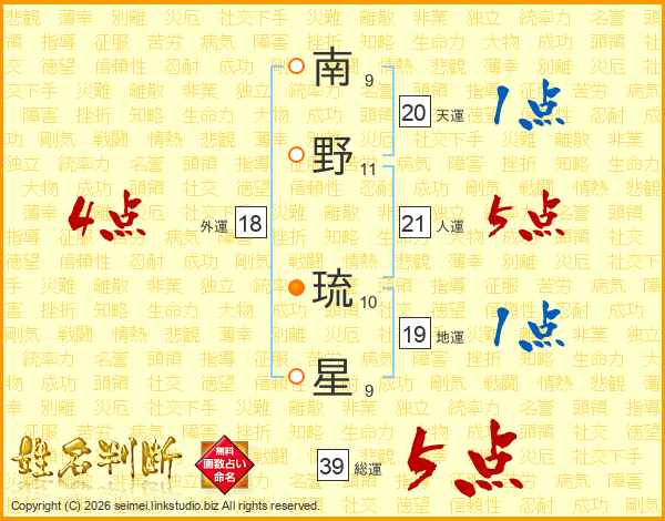 南野琉星さんの総運は39画の5点!