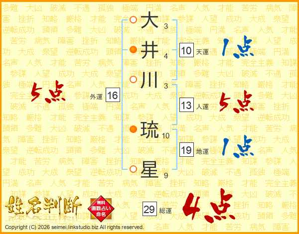 大井川琉星さんの総運は29画の4点!
