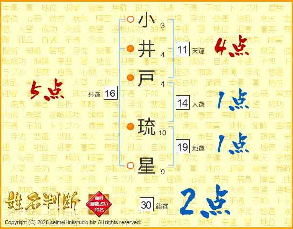 小井戸琉星さんの天運は11画の4点!