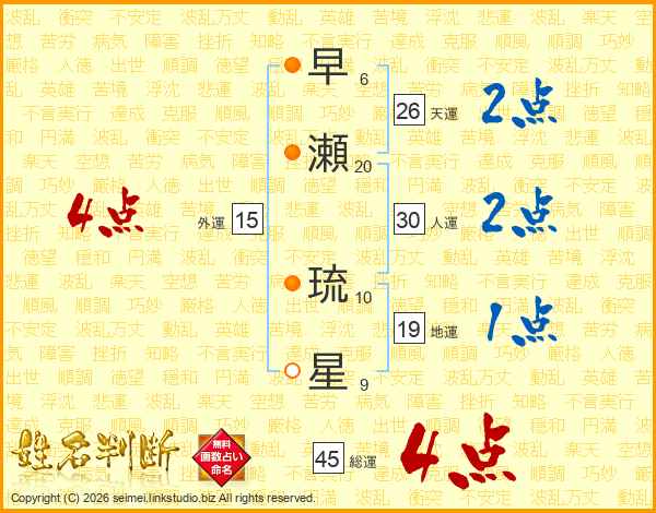 早瀬琉星さんの総運は45画の4点!