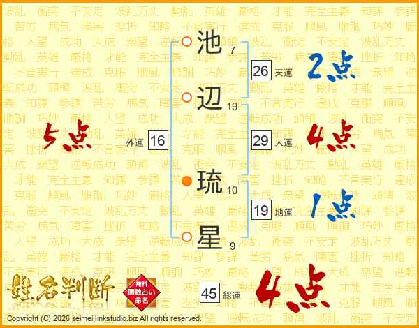 池辺琉星さんの総運は45画の4点!
