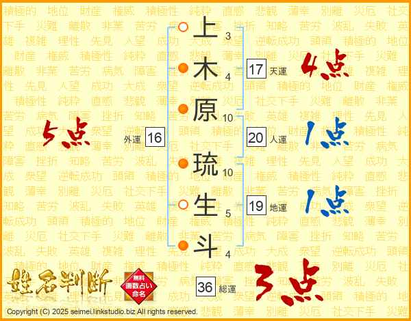 上木原琉生斗さんの天運は17画の4点!