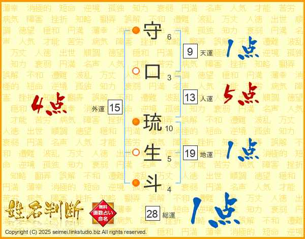 守口琉生斗さんの総運は28画の1点!