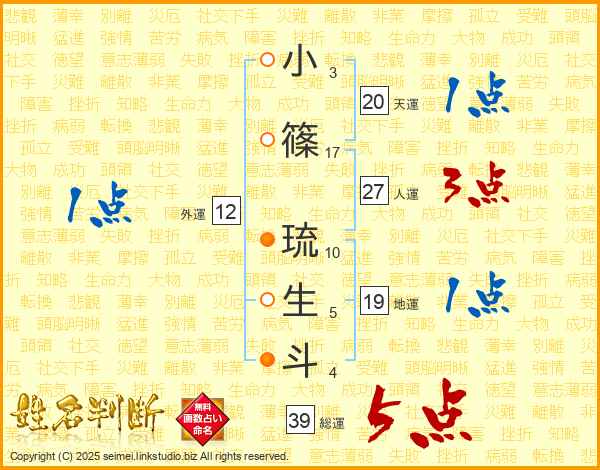 小(3画)篠(17画) 琉(10画)生(5画)斗(4画)