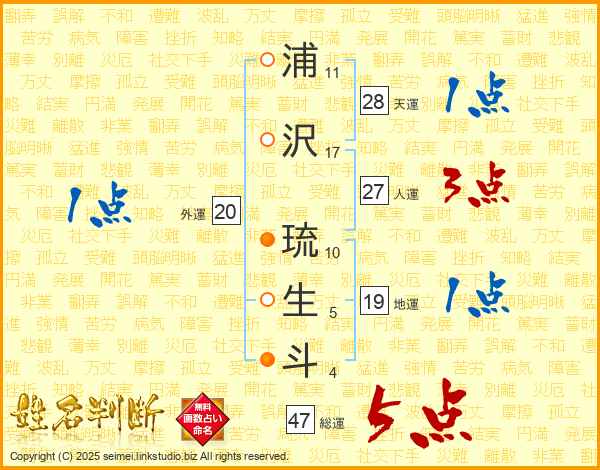 浦沢琉生斗さんの総運は47画の5点!