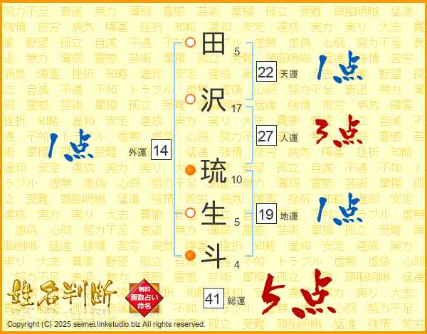 田沢琉生斗さんの総運は41画の5点!