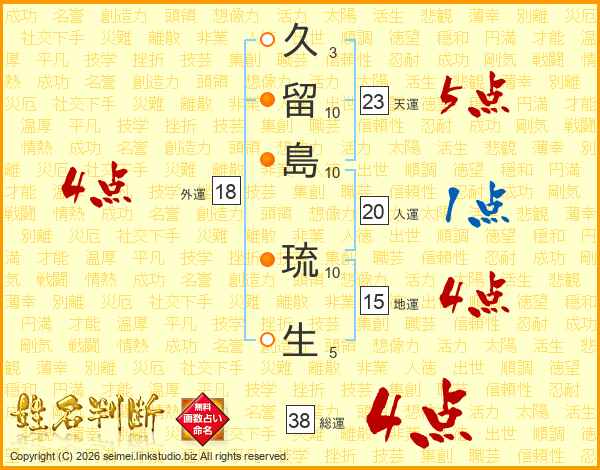 久留島琉生さんの総運は38画の4点!