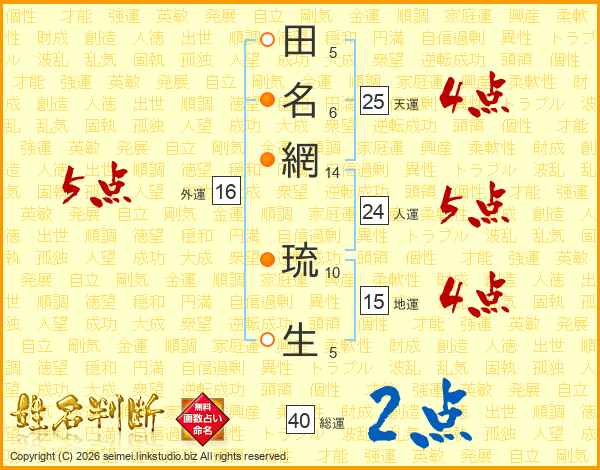 田名網琉生さんの天運は25画の4点!