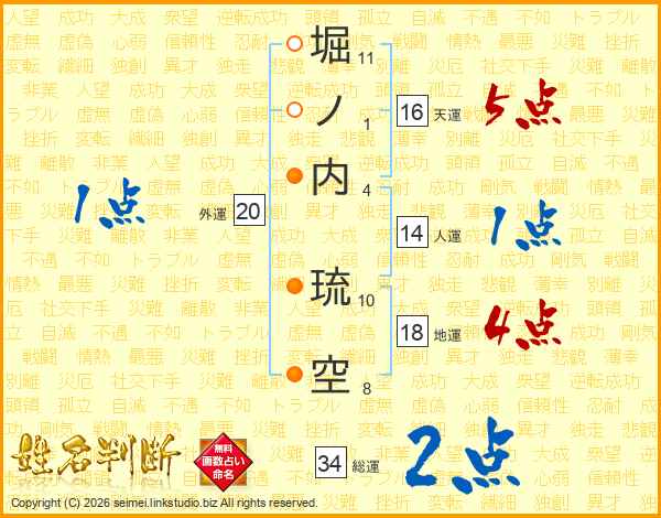堀ノ内琉空さんの総運は34画の2点!