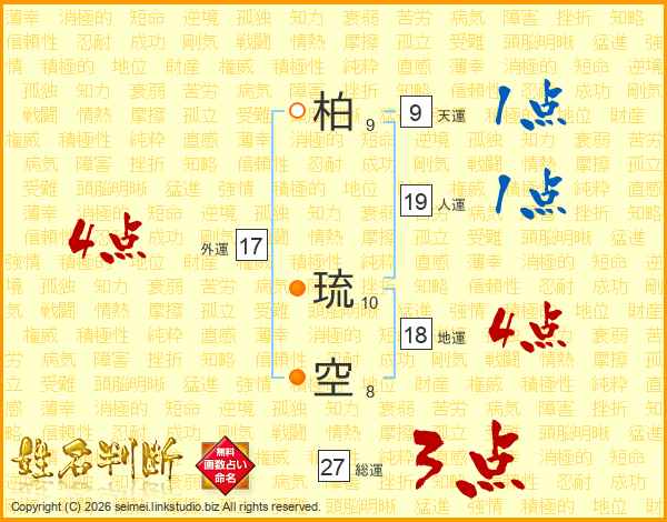 柏琉空さんの外運は17画の4点!
