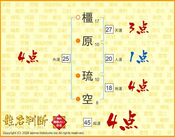 橿原琉空さんの総運は45画の4点!