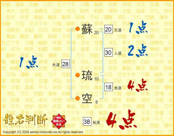 蘇琉空さんの総運は38画の4点!