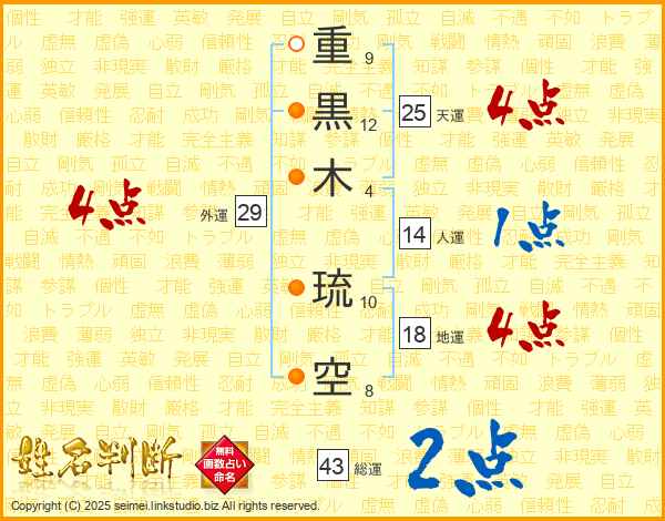 重黒木琉空さんの天運は25画の4点!