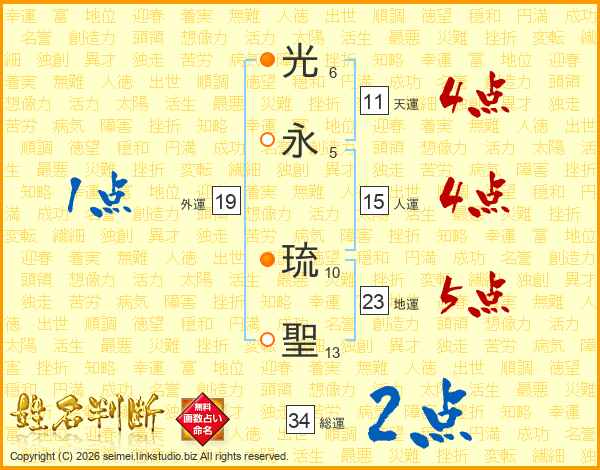 光(6画)永(5画) 琉(10画)聖(13画)