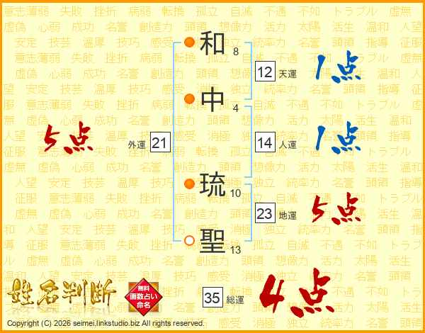 和中琉聖さんの総運は35画の4点!