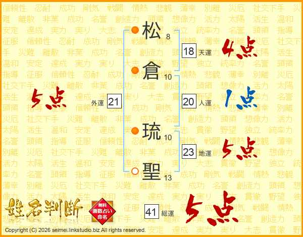 松倉琉聖さんの総運は41画の5点!