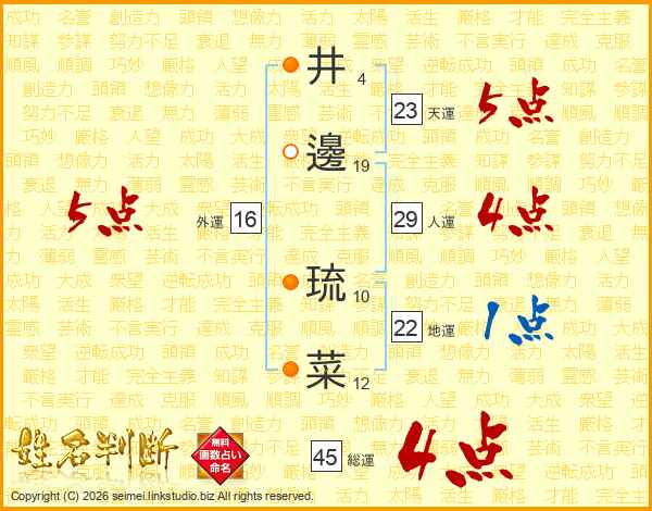 井邊琉菜さんの総運は45画の4点!