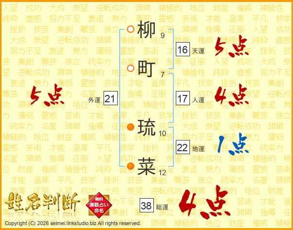 柳町琉菜さんの総運は38画の4点!